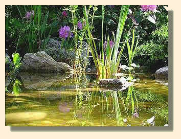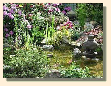 Sinnbild des Lebens, meist als Bachlauf, der mit einem kleinen Wasserfall in einen Teich mündet, realisiert. Vervollständigt wird ein Japanischer Garten durch Steinlaternen aus Sandstein bzw. Granit, oder wie die unsrige, die